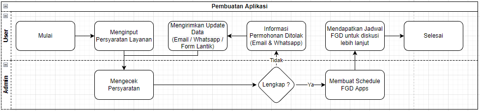 Diskominfo melayani pembuatan aplikasi untuk OPD Kota Metro. OPD dapat mengajukan pembuatan aplikasi yang dibutuhkan kepada Diskominfo. Tim Diskominfo akan melakukan analisis kebutuhan aplikasi yang diminta, dan melakukan pembuatan aplikasi dimaksud.